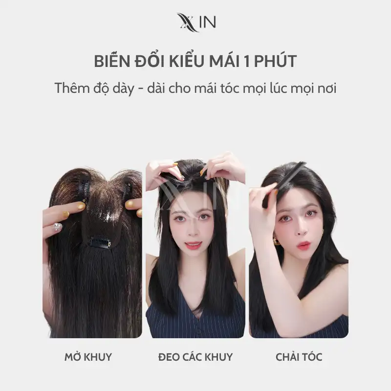 hiết Kế Tinh Tế, Dễ Dàng Hòa Quyện: Với thiết kế thông minh, tóc giả sẽ hòa quyện một cách hoàn hảo vào mái tóc thật của bạn, tạo nên vẻ đẹp tự nhiên không tì vết. Đặc biệt phù hợp để tăng độ phồng cho phần đỉnh đầu hoặc che đi đường ngôi bị thưa