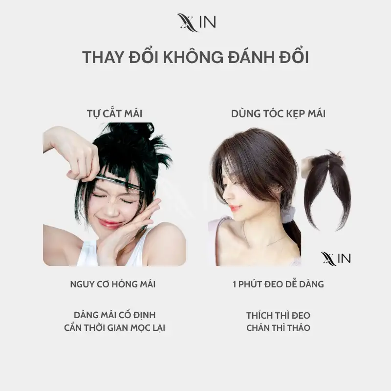 2 Kẹp Siêu Chắc Chắn – Thoải Mái Cả Ngày Dài: Hệ thống 2 kẹp nhỏ gọn nhưng vô cùng chắc chắn giúp cố định miếng tóc giả an toàn trên tóc thật của bạn, không gây đau đầu hay khó chịu. Bạn có thể thoải mái hoạt động, làm việc hay vui chơi mà không lo tóc bị xê dịch.