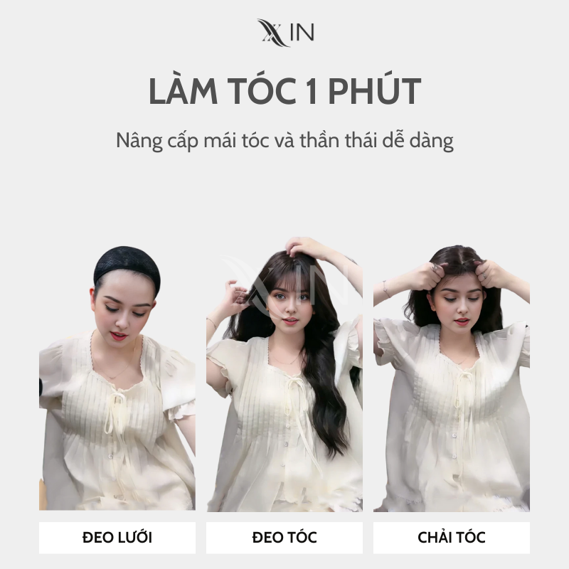 Mềm Mại Như Lụa Tơ Tằm – Cảm Nhận Khác Biệt Ngay Lập Tức: Chỉ cần chạm nhẹ, bạn sẽ cảm nhận được sự mềm mại, mướt mát không thể tin được. Tóc giả lụa phủ nano mô phỏng hoàn hảo độ bồng bềnh, óng ả và suôn mượt của mái tóc thật khỏe mạnh. Bạn sẽ không còn lo tóc bị bết dính hay thiếu sức sống!
