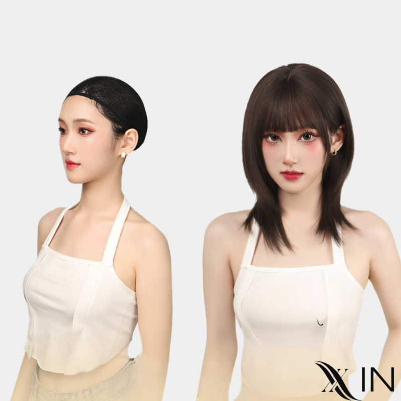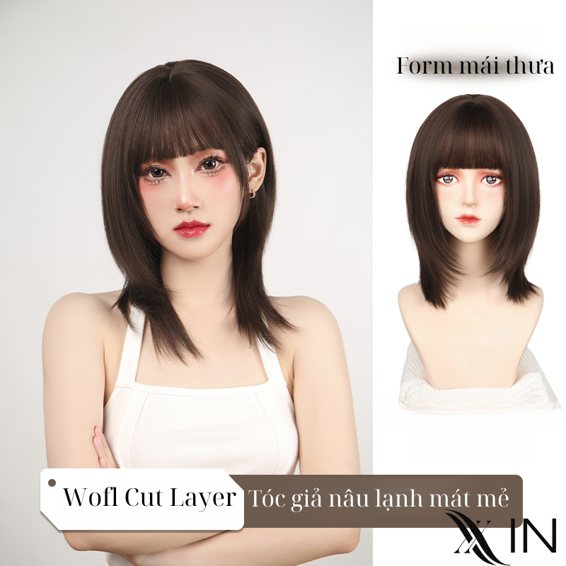 Tóc giả nguyên đầu wolf cut layer mái thưa nâu lạnh